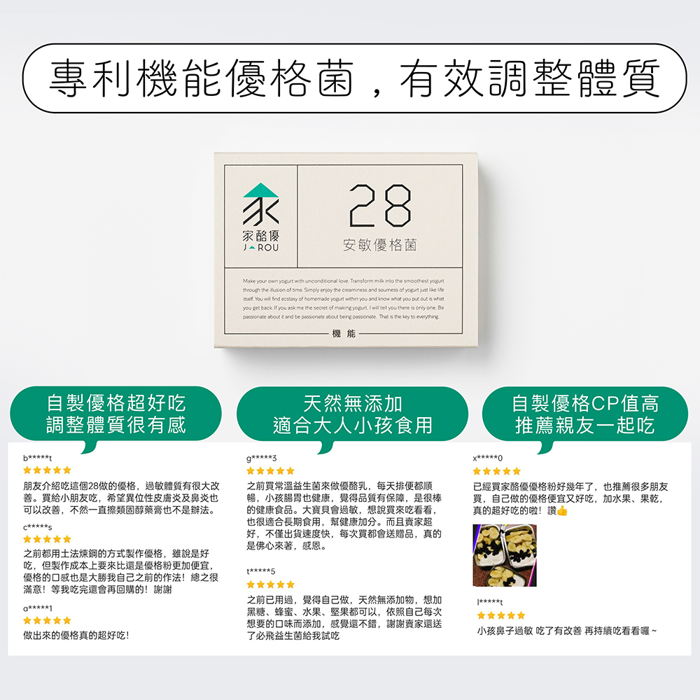 ● 28 安敏優格菌:5 株菌、綿密香醇、安敏順暢、調整體質