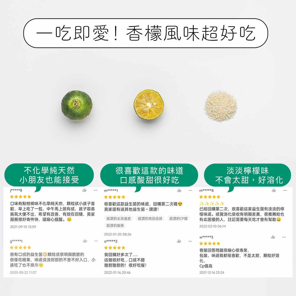 – 成分:非基改玉米澱粉、砂糖、克菲爾酸奶粉(脫脂奶粉、麥芽糊精、砂糖、酵母抽出物、乳酸菌(已滅菌))、異麥芽寡醣、天然檸檬原汁、綜合酵素(麥芽糊精、澱粉酵素、植酸酵素、糖化酵素RO、複合酵素(含脂解酵素、蛋白酵素、澱粉酵素、麥芽糊精)、中性細菌蛋白酵素、鳳梨酵素、蛋白酵素4.5、轉化酵素、蛋白酵素3.0、半纖維素分解酵素、果膠酵素、α-半乳糖苷酵素、蛋白酵素AM、脂解酵素、胜肽分解酵素、乳糖酵素、蛋白酵素6.0、澱粉糖化分解酵素、纖維素分解酵素AN)、乳酸菌