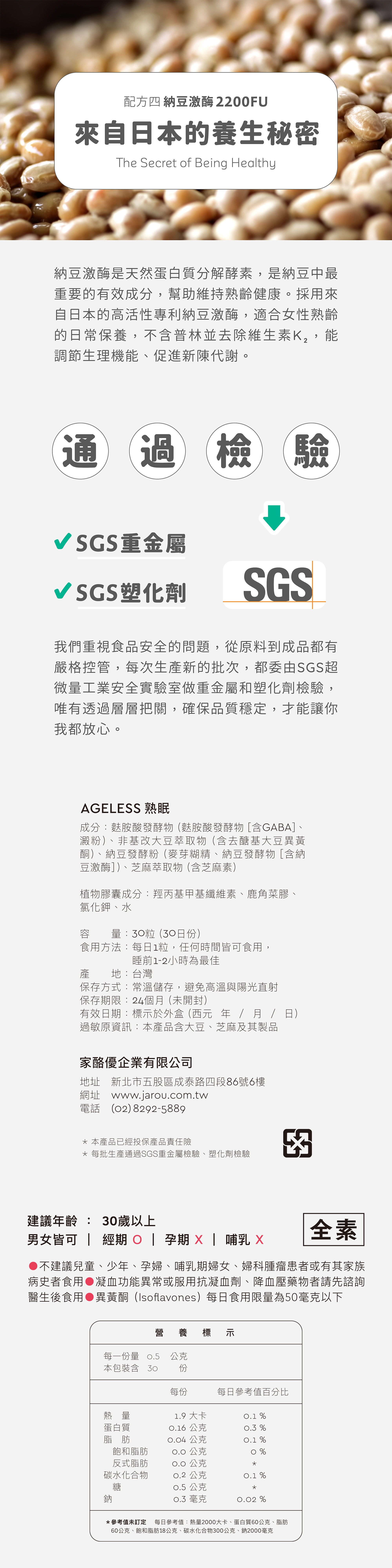 –商品名稱:AGELESS 熟眠 大豆異黃酮